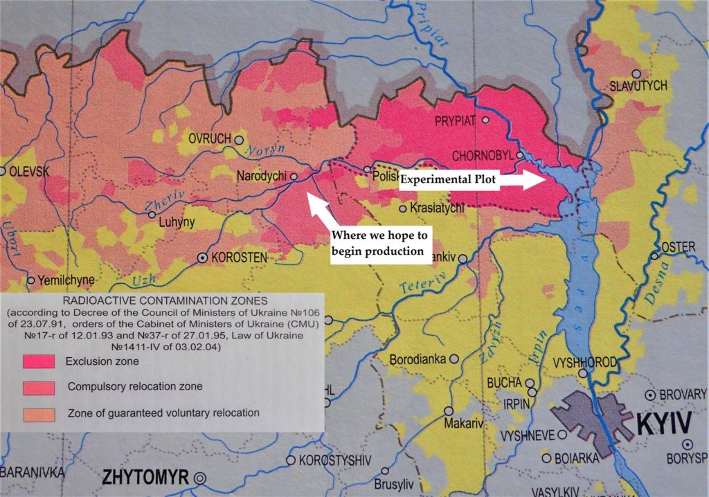 Pierwsza partia alkoholu powstała ze zboża zebranego z pól znajdujących się w Zonie, w rejonie Zbiornika Kijowskiego. Jednak produkcja na skalę masową miałaby korzystać z innych upraw. – Nie planujemy uprawiać zboża w strefie wykluczenia na skalę przemysłową, ponieważ tam istnieje rezerwat dzikiej przyrody. Natomiast chcemy pracować w strefie obowiązkowego przesiedlenia, gdzie poziomy zanieczyszczenia są znacznie niższe i gdzie wciąż żyją ludzie. Staramy się stworzyć wysokiej jakości produkt, który będzie wspierał rozwój gospodarczy tych terenów – powiedział prof. Smith.