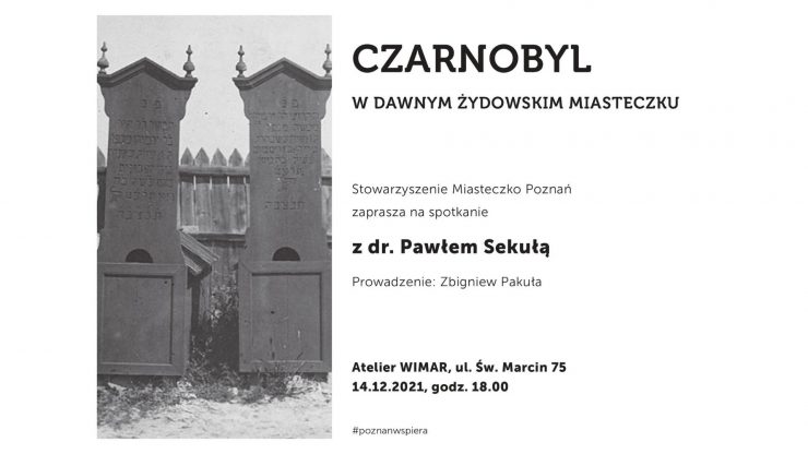 Dr Paweł Sekuła opowie o żydowskim miasteczku, do którego pod koniec XVII wieku Żydzi zostali ściągnięci przez polskich właścicieli i Lubomirskich. Stanowili blisko 60 proc. mieszkańców. Czarnobyl był jednym z najważniejszych ośrodków chasydyzmu na Ukrainie. Na czele dynastii chasydzkiej stał Menachem Twerski, uczeń Baal Szem Towa. W czasie wojny Niemcy w 1941 roku wymordowali prawie całą społeczność pozostałą jeszcze w miasteczku. Ci, którzy uciekli, przechowali się w oddziałach partyzanckich. Ok. 1970 roku w Czarnobylu mieszkało jeszcze 150 Żydów. Miasteczko jest symbolem poplątania losów polsko-żydowsko-ukraińskich. Choć dobrze znane jest z katastrofy, to jego wcześniejsze historia pozostaje nadal mało znana. Właśnie o tym opowie Paweł Sekuła, prezentując w czasie spotkania duży zbiór zdjęć.