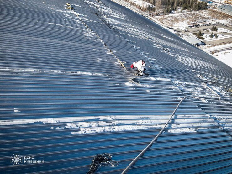 ”, nad zniszczonym czwartym reaktorem czarnobylskiej elektrowni. Konstrukcja miała zapewnić ochronę przez 100 lat. Niestety atak faszystowskiego drona z 14 lutego 2025 r. zniweczył te plany – arkada stała się bowiem podatna na rdzę z powodu większego narażenia na działanie czynników atmosferycznych i uszkodzenia powłoki. Aby ugasić pożar wywiercono w konstrukcji 200 małych otworów.