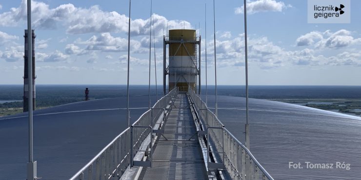 Na dachu Nowej Bezpiecznej Powłoki przebywaliśmy około 20 minut. W tym czasie udało nam się obejrzeć niezwykłą panoramę strefy z takimi charakterystycznymi punktami jak: rozdzielnia energetyczna elektrowni, radar Duga, miasto Prypeć czy też rzeka Prypeć wraz z mostem, po którym przejeżdża „elektriczka” ze Sławutycza do elektrowni, wykonać trochę zdjęć, kilka fotek selfie, a także przespacerować się kilkanaście metrów po dachu. W najdalej wysuniętym miejscu na dachu, do którego udało nam się dotrzeć, dozymetr Terra-P wskazał 136 µSv/h.