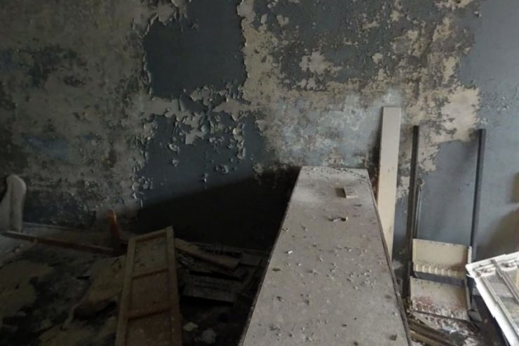 W samym centrum Prypeci, na obrzeżu parku rozrywki znajduje się mały, niepozorny budynek. Znany bardziej z zewnątrz, ze względu na namalowane na nim graffiti rodziny jeleni, niż z wewnątrz. Ten budynek to amatorska strzelnica. Zobacz jej wnętrze na zdjęciu sferycznym.