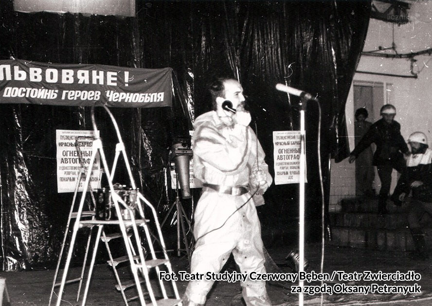 Właśnie wtedy powstała obecna nazwa teatru Zwierciadło. W maju 1986 r. w Czarnobylu teatr zagrał pierwszą na świecie sztukę poświęconą katastrofie pt. “Autografy z ognia”. W ciągu trzech lat grupa blisko 90 razy wstawiała swoje spektakle na terenie Czarnobylskiej Strefy Wykluczenia.