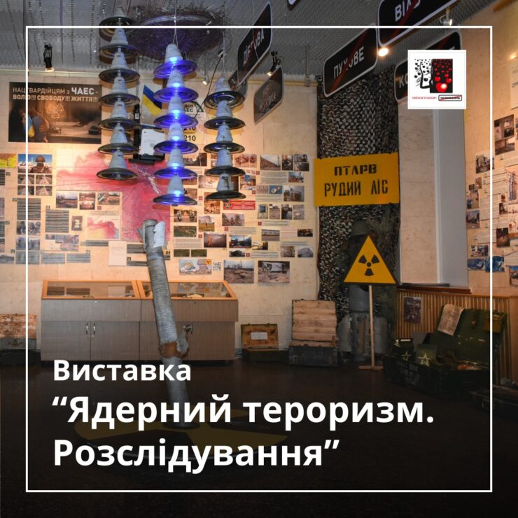 Wystawa zawiera zdjęcia, filmy i pamiątki materialne, które opowiadają o okupacji dwóch ukraińskich elektrowni jądrowych i są dowodami rosyjskiego terroryzmu nuklearnego. Wśród unikalnych eksponatów jest m.in. flaga Ukrainy, która do 24 lutego 2022 r. powiewała nad elektrownią jądrową w Czarnobylu i została zerwana przez raszystów. Flaga ta ponownie zawisła na maszcie po ponad miesięcznej okupacji.